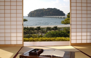 景勝地「竹島」文学記念館日本間で抹茶を愛でながら日本文学をお楽しみください