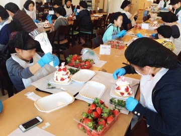 いちごをたっぷり使ったクリスマスケーキ作り体験
